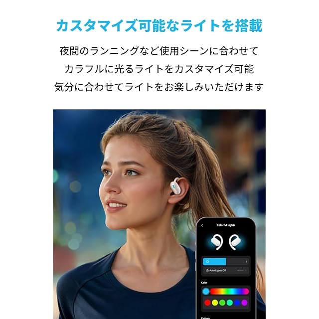 カスタマイズ可能なライトを搭載:夜間のランニングなど使用シーンに合わせて、カラフルに光るライトをカスタマイズ可能。気分に合わせてライトをお楽しみいただけます。