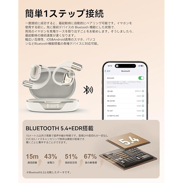 bluetooth ワイヤレスイヤホン 6つシリコンマイク搭載 AIスマートENC通話ノイズキャンセリング 90時間音楽再生2026最新bluetooth 5.4クリップイヤホン耳掛け型オープンイヤー イヤホンIPX7 防水全帯域HI-FI音漏抑制 超低遅延ブルートゥースイヤホン骨伝導の革新 会議/運動/ゲーム/通学/通勤/用iPhone/Android対応