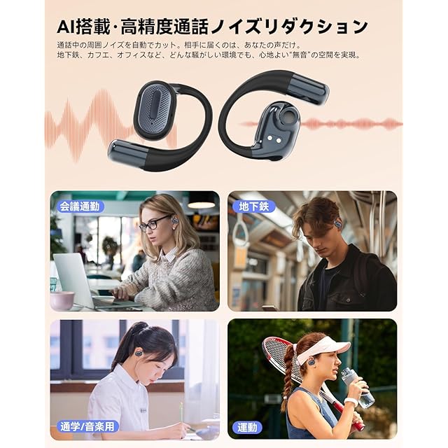 商品名:《新品未開封》Bluetoothイヤホン ワイヤレスイヤホン 6 つシリコンマイク搭載 AIスマートENC通話 60時間音楽再生2026最新bluetooth 6.0 クリップイヤホン空気伝導耳挟み式オープンイヤー IPX7防水全帯域音質低遅延 ブルートゥースイヤホンWEB会議/運動/ゲーム/テレワーク/通学/通勤/スポーツ/音楽用 iPhone/Android対応 (バッテリー残量表示, ブラック)