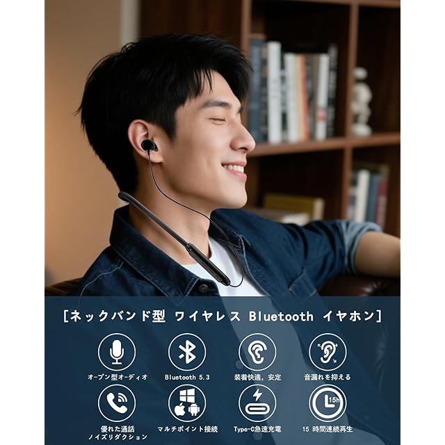 商品名:《新品未開封》イヤホン 首掛け Bluetoothイヤホン ネックバンド型ワイヤレス 2026新登場 Bluetooth 5.3 Hi-Fi音質 1回の充電で最大40時間連続使用可能 マグネット搭載 IPX7防水防汗 自動ペアリング ハンズフリー通話 超軽量 音量調節 マルチポイント対応 ゲーム/音楽/テレワーク/チャット/Siri対応 iPhone/Android対応