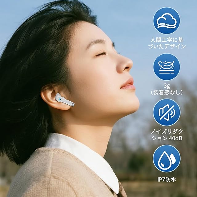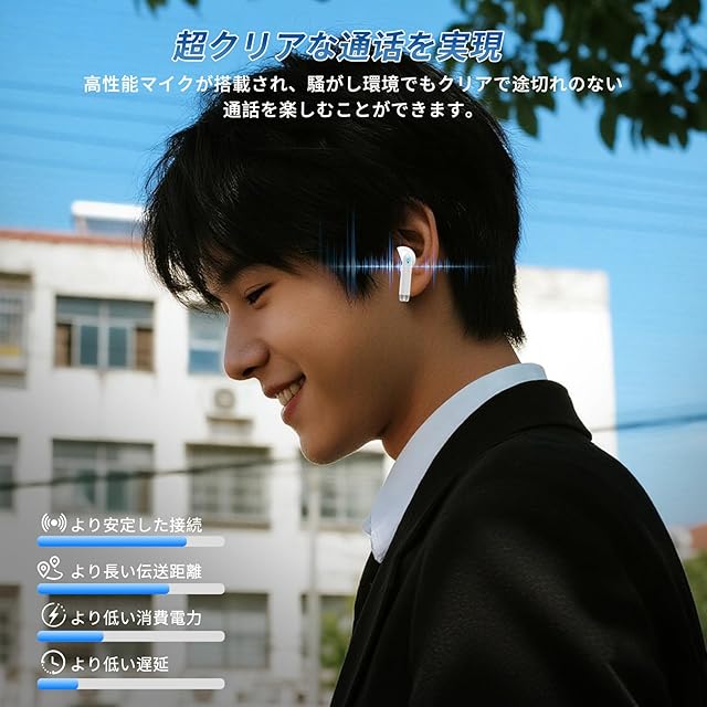 ENCノイズキャンセリングマイクによる高品質通話:各イヤホンには高感度マイクとENCノイズリダクション技術を搭載。周囲の雑音を最大90%まで低減し、相手の声をより明瞭に届けます。駅構内や街中の雑音、風の強い屋外、ジムの中など騒がしい環境下でも、ワイヤレスイヤホンまるで対面で話しているかのようにスムーズな会話が可能です。