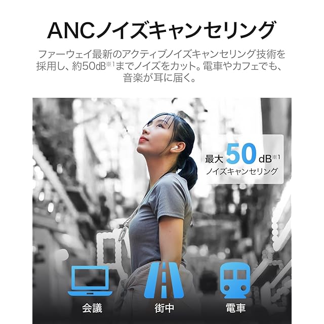 【最大50dBのアクティブノイズキャンセリング(ANC)】:24dBの平均フルレンジ深度ノイズキャンセリングにより、騒がしい環境下でも外部音を遮断して、静かな部屋のような没入感を楽しめます。