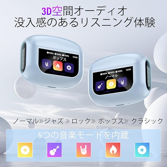 多機能スマートタッチスクリーン:このタッチスクリーンイヤホンにはカラータッチディスプレイが搭載されています。イヤホン本体または充電ケースから、音楽の再生、曲の切り替え、通話の応答と終了、ノイズキャンセリングモードの有効化など、様々な操作が可能です。さらに、タッチスクリーンには、音量調整、カメラ操作、7言語切り替え、壁紙切り替え、画面の明るさ調整、イヤホン検索、懐中電灯、タイマーなどの機能も搭載されています