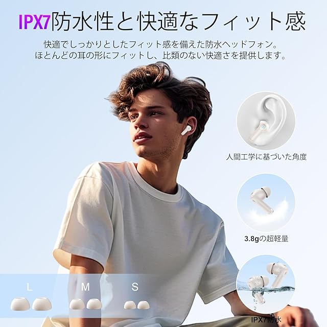 IPX7防水&快適な装着感:当社のイヤホン、IPX7防塵・防水規格に適合した密閉設計とナノ防水コーティングを採用し、雨や汗によるダメージを効果的に防ぎます。人間工学に基づいたデザインにより、長時間装着しても安定性と快適性を確保し、仕事、旅行、会議、運転、スポーツなど、あらゆるシーンで活躍します