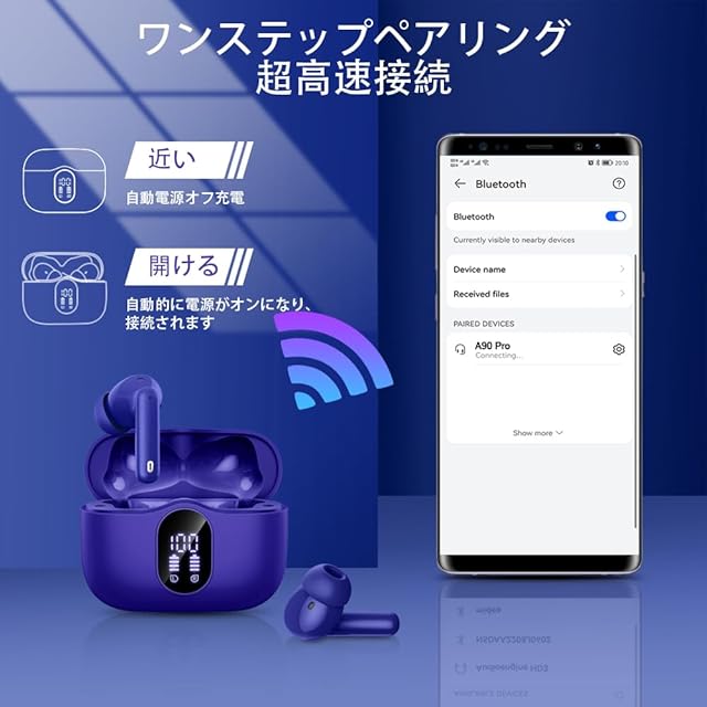 商品名:《新品未開封》イヤホン bluetooth ワイヤレスイヤホン【2025最新ブルートゥースイヤホン】Bluetooth5.4 ENC通話ノイズキャンセリング 接続瞬時 タッチ操作 HiFi音質 iphone イヤフォン 自動ペアリング 最大40時間再生 超快適設計 LEDディスプレイ Type-C 急速充電 IPX7防水 小型/軽量 Android/Pad適用 スポーツ/WEB会議/通勤/通学