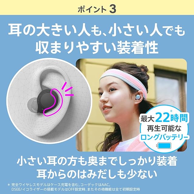安心の基本性能 本体4.6g ケース31gの超軽量小型 小型ながら高いバッテリー性能 コンパクト設計で22時間再生