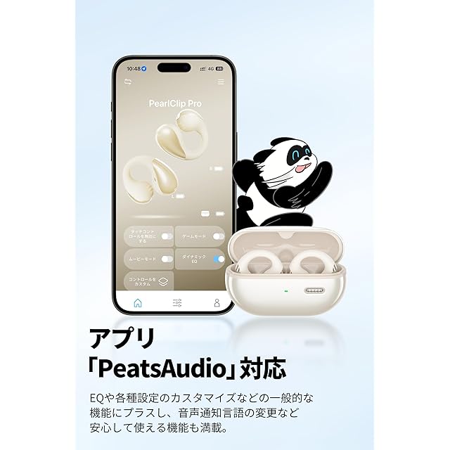 【専用アプリ「PeatsAudio」対応、サウンドのカスタマイズも自由自在】 アプリ「PeatsAudio」ではイコライザーやタッチボタン設定のほか、ファームウェアアップデートでイヤホンを最新の状態に保つことができます。【好みに応じたサウンドモードを自由に選択】低音増強アルゴリズムを採用、「ダイナミックEQ」をオンにすると、より迫力のあるサウンドをお楽しみいただけます。さらに、新機能「ムービーモード」では、独自のアルゴリズムで音源を処理し、まるで映画館やライブ会場にいるかのような、臨場感あふれる立体音響を提供します。
