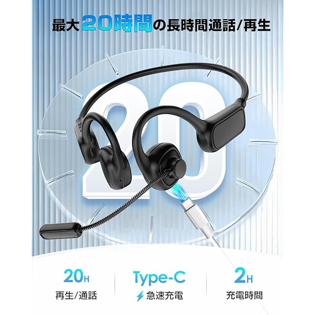 【ビジネスに最適!オープンイヤー イヤホン】このbluetooth ヘッドセットは耳を塞がないデザインで、移動中や職場、デスクでも周囲との繋がりを保つことができ、1日中快適です。オフィスでのコミュニケーションも分断されません。リモートワークでも、家の中で起きていることを把握しながら仕事をすることが可能です。ほとんど全ての職業のニーズに対応しています。運転手、倉庫作業員、オフィス、オンライン授業、在宅勤務、テレワークなど異なる仕事環境において使えます。 【ENCノイズキャンセリングマイク搭載】ENCノイズキャンセリング技術搭載され、通話中の雑音や周囲のノイズを抑制し、相手の声を聞き取りやすく快適な通話を実現します。【角度自由に調整できるマイク】Bluetoothヘッドセットは単一指向性のマイクを採用しており、自分の声だけを確実に拾うことができ、複数人の会議やビジネスチャットが順調に進行できます。口元まで届きやすい13cmのロングマイクを採用し、マイクブームは上下270°自由に回転ができ、お好みの角度に調整して口元に近づいて自分の声だけを相手側にクリアに届けます。使用しない時は後ろに折りたたんでおけば邪魔になりません。 【ENCノイズキャンセリングマイク搭載】ENCノイズキャンセリング技術搭載され、通話中の雑音や周囲のノイズを抑制し、相手の声を聞き取りやすく快適な通話を実現します。【角度自由に調整できるマイク】Bluetoothヘッドセットは単一指向性のマイクを採用しており、自分の声だけを確実に拾うことができ、複数人の会議やビジネスチャットが順調に進行できます。口元まで届きやすい13cmのロングマイクを採用し、マイクブームは上下270°自由に回転ができ、お好みの角度に調整して口元に近づいて自分の声だけを相手側にクリアに届けます。使用しない時は後ろに折りたたんでおけば邪魔になりません。 【ENCノイズキャンセリングマイク搭載】ENCノイズキャンセリング技術搭載され、通話中の雑音や周囲のノイズを抑制し、相手の声を聞き取りやすく快適な通話を実現します。【角度自由に調整できるマイク】Bluetoothヘッドセットは単一指向性のマイクを採用しており、自分の声だけを確実に拾うことができ、複数人の会議やビジネスチャットが順調に進行できます。口元まで届きやすい13cmのロングマイクを採用し、マイクブームは上下270°自由に回転ができ、お好みの角度に調整して口元に近づいて自分の声だけを相手側にクリアに届けます。使用しない時は後ろに折りたたんでおけば邪魔になりません。 【35g超軽量】超軽量設計で、イヤホンを付けていることを忘れてしまうほどの極上のフィット感を提供します。【1年期間】お客様に信頼される会社となることを目標として日々努力しておりますので、使用中、製品の使用について何か不明なところが御座いましたら、ご心配なさらないで注文履歴より弊店までご連絡ください。必ず最善を尽くし、サービスにご対応いたします。連絡方法:「アカウントサービス」>「注文履歴」>「販売元」>「質問する」。