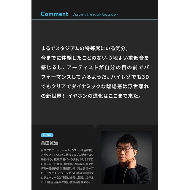 3Dオーディオによる360°の音響体験:独自のアルゴリズムでリアルタイムに音源を処理しライブ会場や映画館にいるような音響体験を提供。頭の動きを検知・追従するヘッドトラッキング機能も搭載しています。
