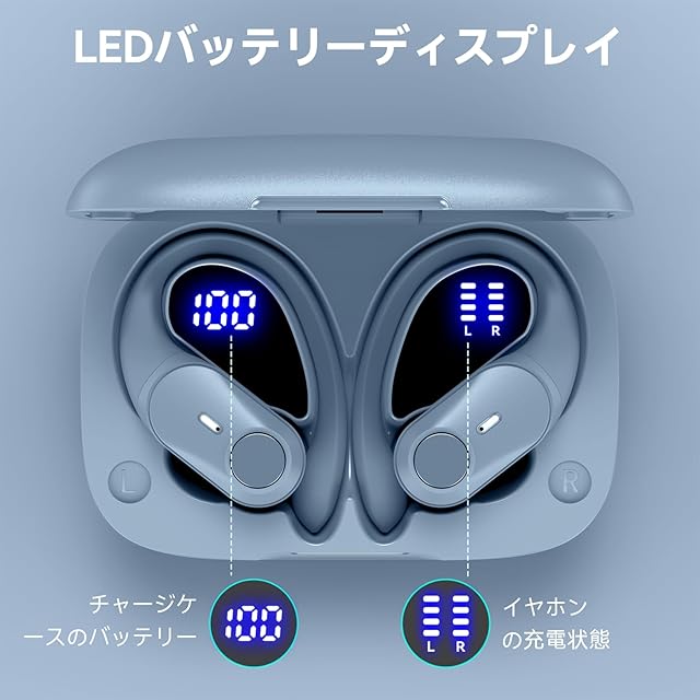 商品名:《新品未開封》GOLREX イヤホン bluetooth ワイヤレスイヤホン 耳掛け式 ぶるーとゅーす イヤフォン 最大40時間再生 Hi-Fi音質 AAC対応 LEDディスプレイ 物理ボタン誤操作なし 落ちない 快適装着感 ランニング スポーツ IPX7防水 片耳/両耳モード QI/Type-C充電 通勤通学/WEB会議に適用 iOS/Android 水色