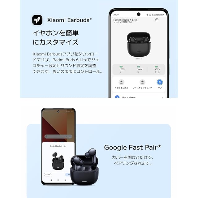 商品名:《新品未開封》Xiaomi ワイヤレスイヤホン Redmi buds 6 Lite ハイブリッドANC搭載 40dBまでアクティブノイズキャンセル 38時間音楽再生 カスタムEQモード Google Fast Pair対応 急速充電 USB Type-C 小型軽量 ブラック