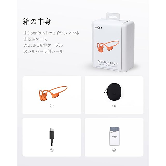 商品名:《新品未開封》Shokz (ショックス) OpenRun Pro 2 骨伝導イヤホン ワイヤレス bluetooth5.3 オープンイヤーヘッドホン 耳を塞がない 自動ペアリングヘッドフォン マイク付き 技適認証済み ランニング・スポーツイヤフォン P55防水 急速充電 12時間再生 USB-C充電 オレンジ