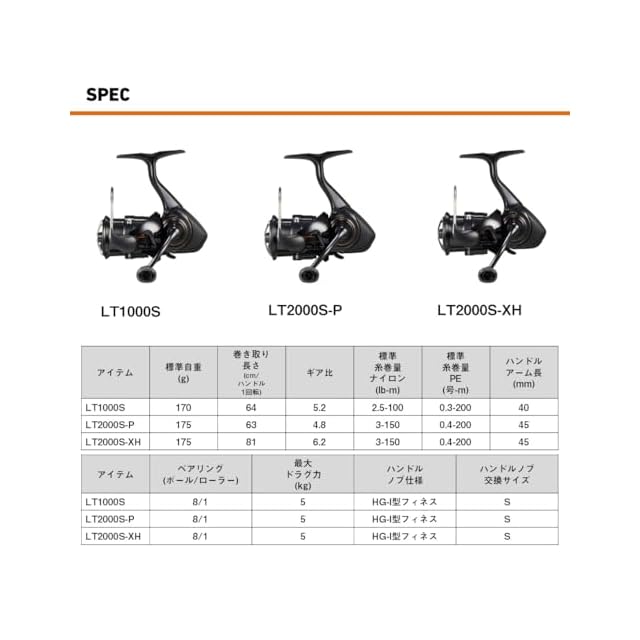 【最大ドラグ力(kg)】5 , 【標準巻糸量PE(号-m)】0.4-200 , 【ハンドル長(mm)】45
