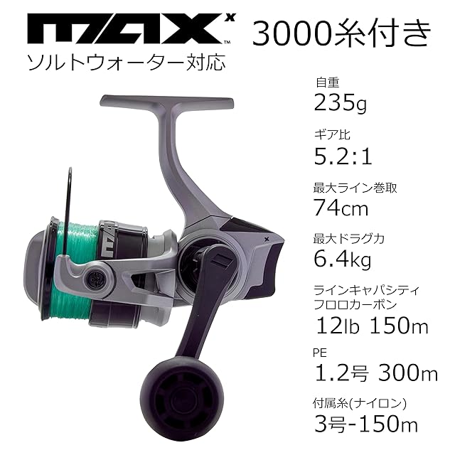 商品名:《新品未開封》AbuGarcia (アブガルシア) マックス X 3000 糸付き 初心者 初級者 入門 ビギナー