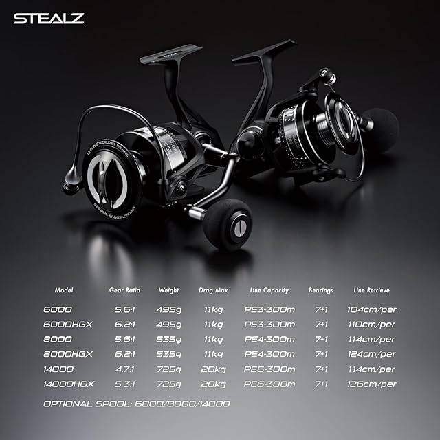 シリーズ:【ステルス HGX】……「剛性を以て、至強へ」パワフル&タフネスを極めたスピニングリール「ステルス」のハイギア(HGX)モデル!! ハイギア(HGX)採用機種すべてに「マニュアルリターン採用」。オフショア&ショアソルトゲームをくまなく知るテイルウォークならではの仕様!!