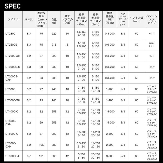 ギア比: 6.2 / 巻取り長さ(cm/ハンドル1回転): 93