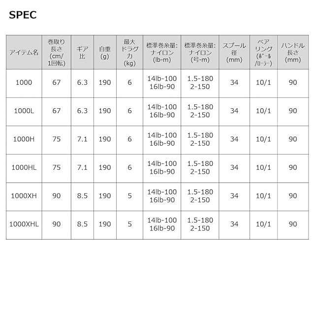 スプール径(mm):34 / ベアリング(ボール/ローラー):10/1