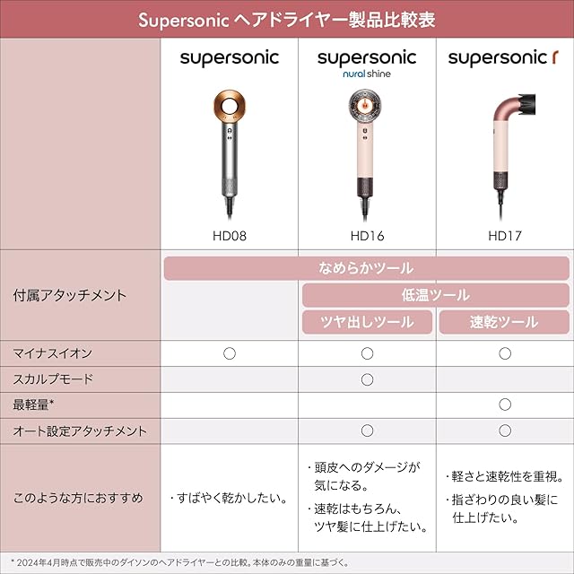 【最軽量モデル²】Dyson Supersonicと比べ、 30% 小さく、20% 軽量に²。スタイリングとドライも容易にできる人間工学に基づいた設計です。