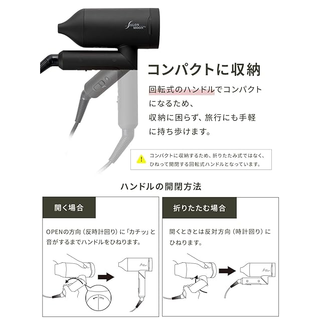 商品名:《新品未開封》SALONMOON ドライヤー 【大風量 2.5㎥/分 x 1億個マイナスイオン】 速乾 ヘアドライヤー 軽量 コンパクト 12段階調節 サロンムーン (ムーングレー, ドライヤー単品)