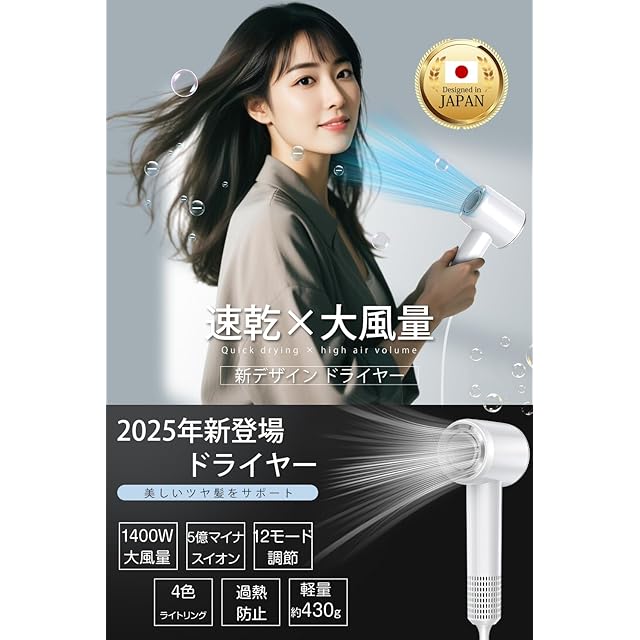 【安全機能充実・サロン級仕様】過熱防止機能や防塵フィルターを備え、安全性に優れた最新型 ヘアドライヤー。美容師監修のサロン級仕様で、家庭用でもプロ級の仕上がりを実現します。速乾性能を持つ ドライヤー 大風量 は、髪を守りながら素早く乾かす信頼の ドライヤー速乾。日常的に安心して使える高品質 ドライヤー です。
