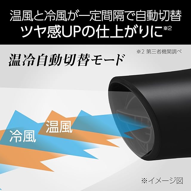 温冷自動切替モードで、温風と冷風が一定の間隔で自動切替。熱ダメージを抑えながらツヤ感とまとまりのある髪へ。