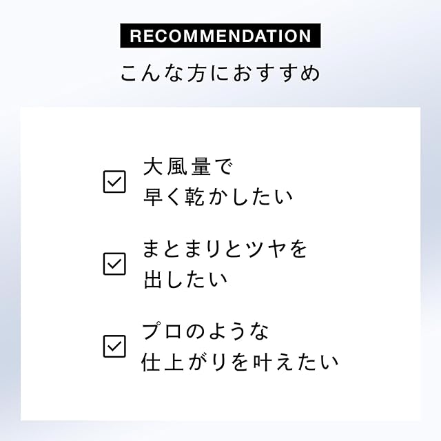 速乾※で、プロ仕上げ。進化し続ける「風」の力で、しっとりまとまり、ツヤめく髪へ。※当社従来商品2021年発売 ReFa BEAUTEC DRYER PROとの比較(当社調べ)