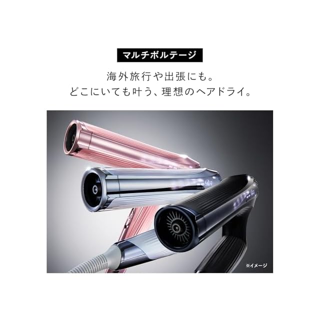 【どこにいても叶う、理想のヘアドライ】海外でも変圧器なしで使用可能な、マルチボルテージ仕様。コンパクトに折りたためて、持ち運びも簡単だから、旅行先や出張先でも、いつもと変わらない美しい髪に。