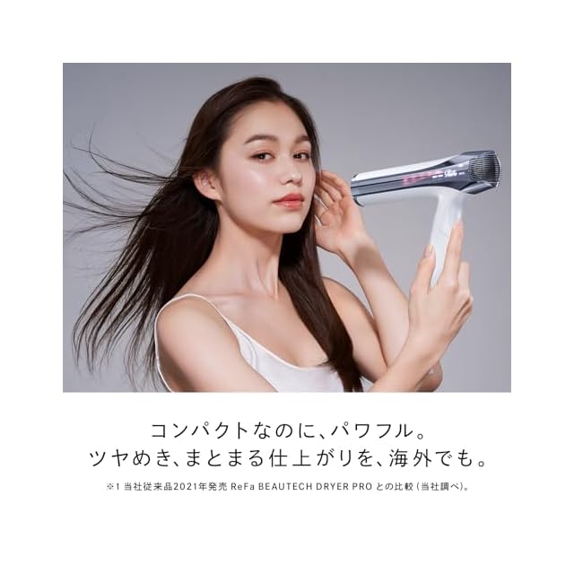 【コンパクトなのに、パワフル。ツヤめき、まとまる仕上がりを、海外でも】速乾※、そして仕上がりの美しさのすべてを同時に叶えるヘアドライヤー。コンパクトなボディから生まれるパワフルな風で、ツヤめきと、美しいまとまりを叶えます。海外でも使えるマルチボルテージ仕様だから理想のスタイルを、旅行先や出張先でも。独自のテクノロジーとメソッドで、いつものヘアドライをもっと美しくなれる時間へ。※当社従来品2021年発売ReFa BEAUTECH DRYER PROとの比較(当社調べ)