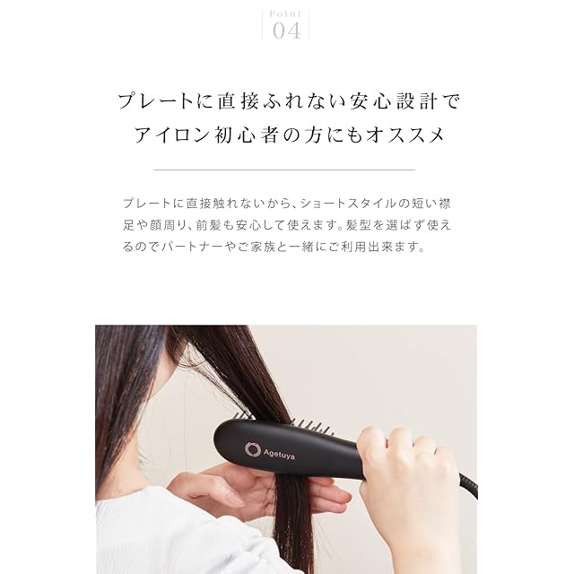 商品名:《新品未開封》Agetuya アゲツヤ ヒートブラシ ポータブル ミニブラシ アイロン ブラック | 海外対応 ストレート ヘアアイロン 軽量 痛まない プロ仕様 210℃