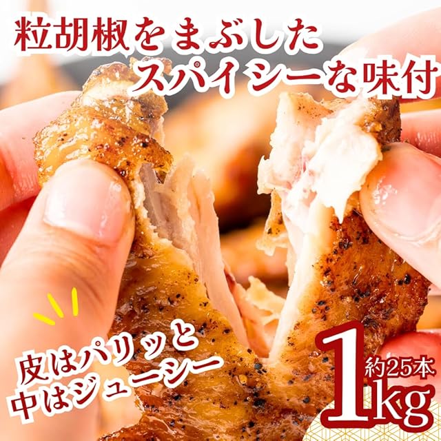 ・粒胡椒をまぶしたスパイシーな味付で、お酒の“おつまみ”として最適です。皮はパリッと中はジューシーに仕上がります。子供から大人まで大人気の味です!1袋に約25本入ってます!
