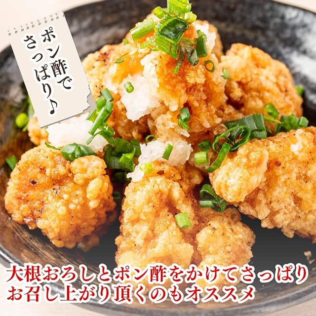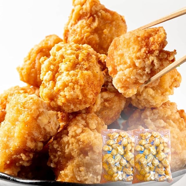 原材料名:鶏むね肉、でん粉、揚げ油(大豆油)、小麦粉、しょう油、大豆たんぱく、食塩、にんにく、しょうが、塩麹、チキンエキス調味料、白こしょう、卵、脱脂粉乳/加工デンプン、調味料(アミノ酸等)、ph調整剤、ポリリン酸Na、重曹、(一部に卵・乳成分・小麦・大豆・鶏肉を含む)
