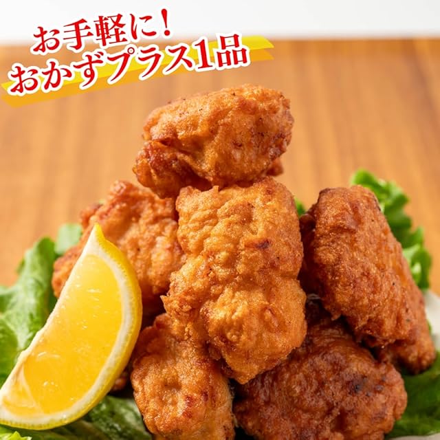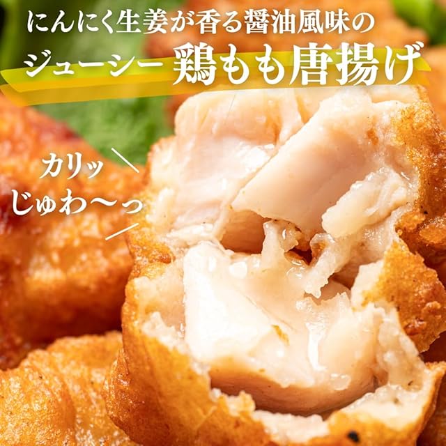原材料名:鶏もも肉、小麦粉、馬鈴薯澱粉、揚げ油(大豆油)、醤油、粉末状植物性たん白、卵、食塩、にんにく、生姜、ぶどう糖、チキンエキス調味料、白胡椒、脱脂粉乳/調味料(アミノ酸等)、リン酸塩(Na)、(一部に卵、乳成分、小麦、大豆、鶏肉を含む)