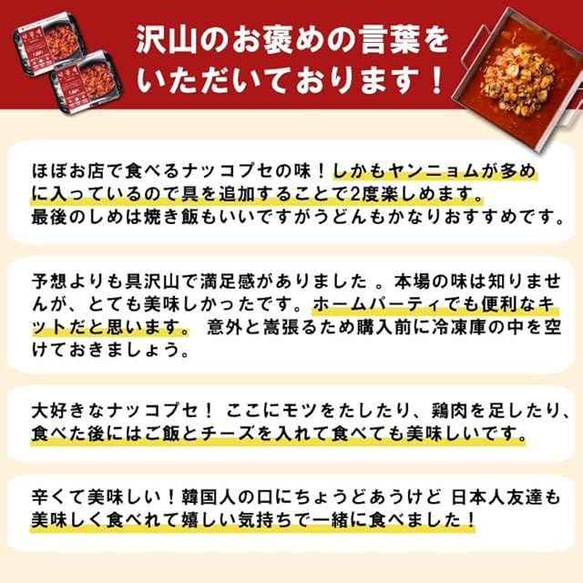 韓国グルメ好き、辛い料理好きの方に大好評、韓国鍋パーティーやお酒のおつまみでも大活躍