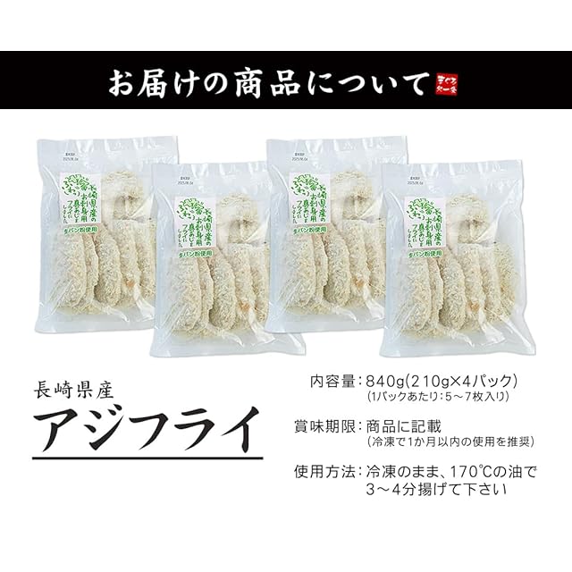 商品名:《新品未開封》まぐろ処一条 長崎県産 アジフライ840g(210g×4パック) 半身20~28枚 [[国産アジフライ210g-4p]