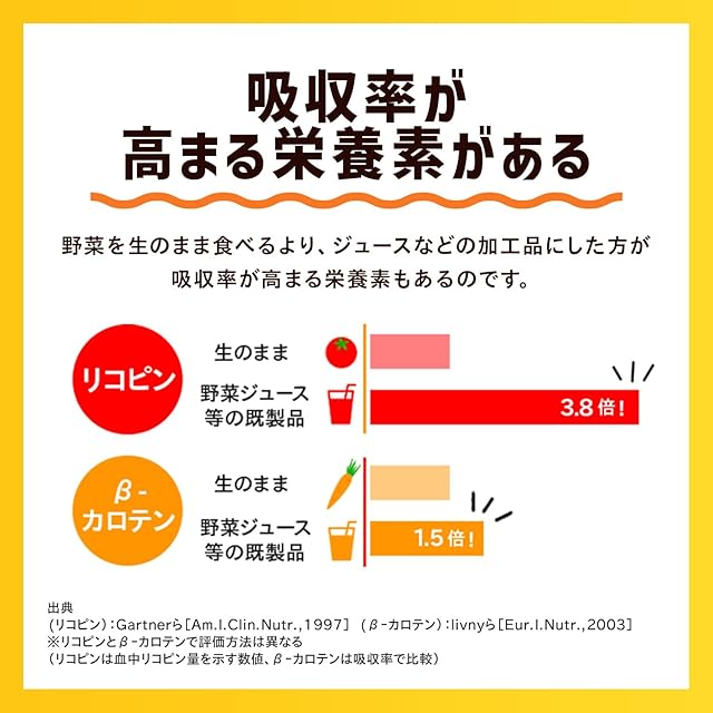 「これ1本」に彩り豊かな30品目の野菜350g分を使用。砂糖や香料、栄養強化剤などを使用せずに野菜本来のおいしさと栄養※を提供する無添加の野菜汁100%ジュースです。トマトの濃厚な味わいを楽しみながら、野菜と栄養※を手軽に補うことができます。※食物繊維、カリウム、カルシウム、ビタミンA、リコピン