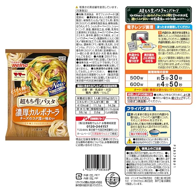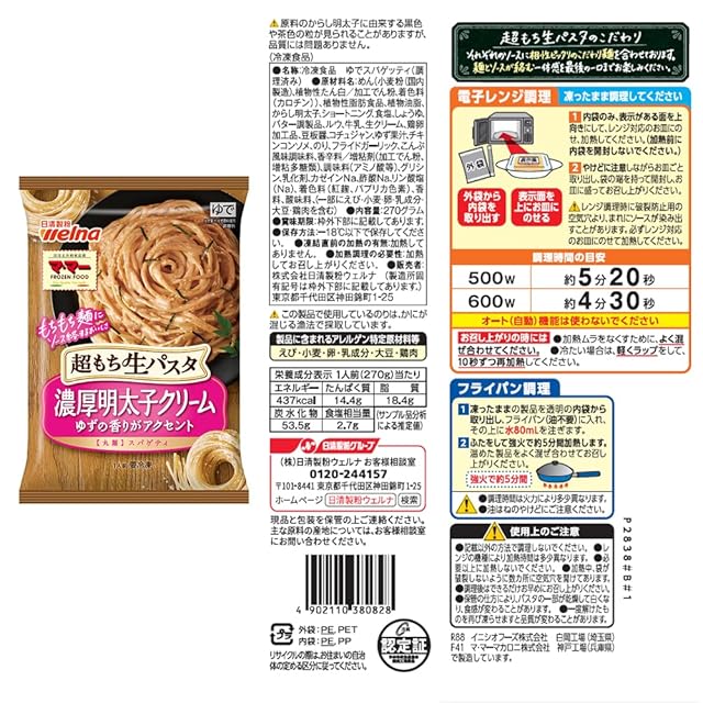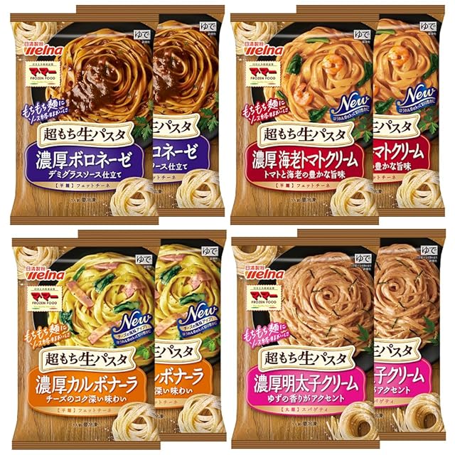 商品名:《新品未開封》[冷凍] 日清製粉ウェルナ マ・マー 超もち生パスタ 濃厚シリーズ 4種X各2個 バラエティセット 2230g