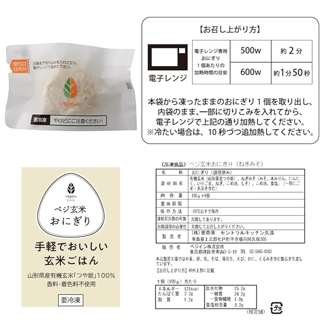 商品名:《新品未開封》【有機玄米 冷凍おにぎり 本格ねぎ味噌仕立て】 有機JAS玄米使用 玄米おにぎり 山形県つや姫使用 冬にうれしい香ばしさ 個包装 自宅用 会社用 無農薬 国産 管理栄養士監修 完全栄養食 ファスティング 食欲不振 100g×6個入×2袋 香りで満たす ベジイン 冬の玄米おにぎり