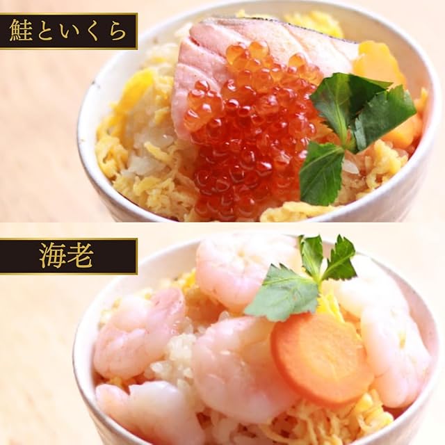 色:五目・鮭といくら・海老・鯛・浅蜊・ずわい蟹(各1食ずつ)