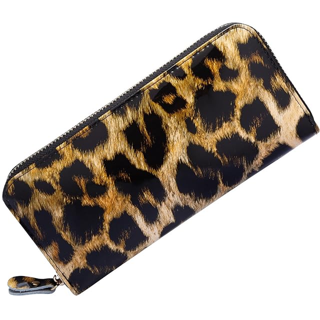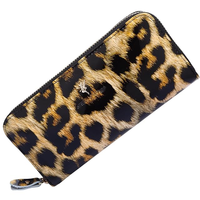 《新品未開封》[フェアーフェアリー] レディース 財布 本革 エナメル ラウンドファスナー 長財布 120029 (ヒョウ柄)