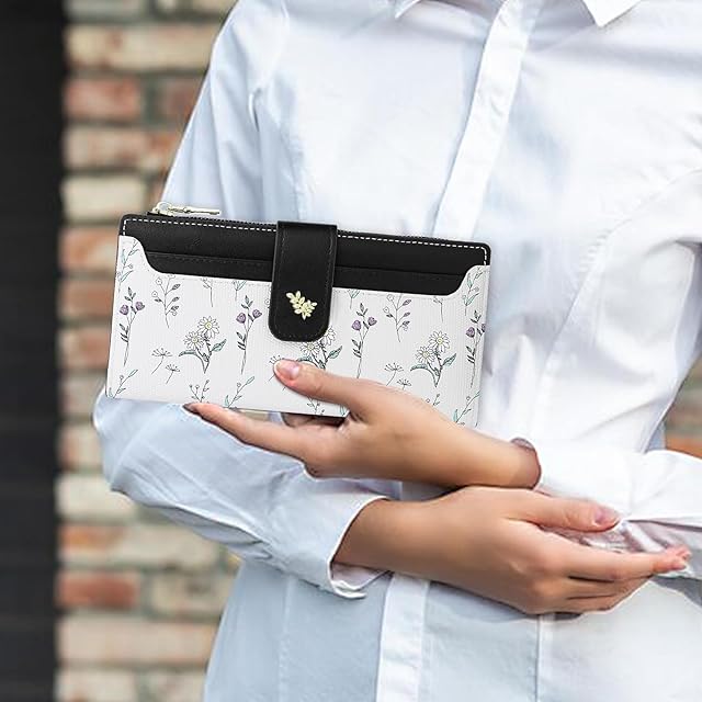 Farcauo 財布 レディース 長財布 レディース 2つ折り 人気 可愛い 女性のためのかわいい黒の札入れ RFID盗難防止機能を搭載 wallet women ミニマリストな花柄デザインを採用し コインポケット付き 小銭入れ