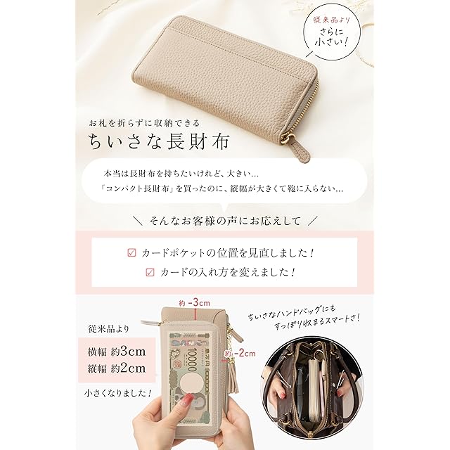 【小さなハンドバッグにも入る】 財布の「高さ」にもこだわったから、ハンドバッグでもはみ出さないうれしいサイズ。