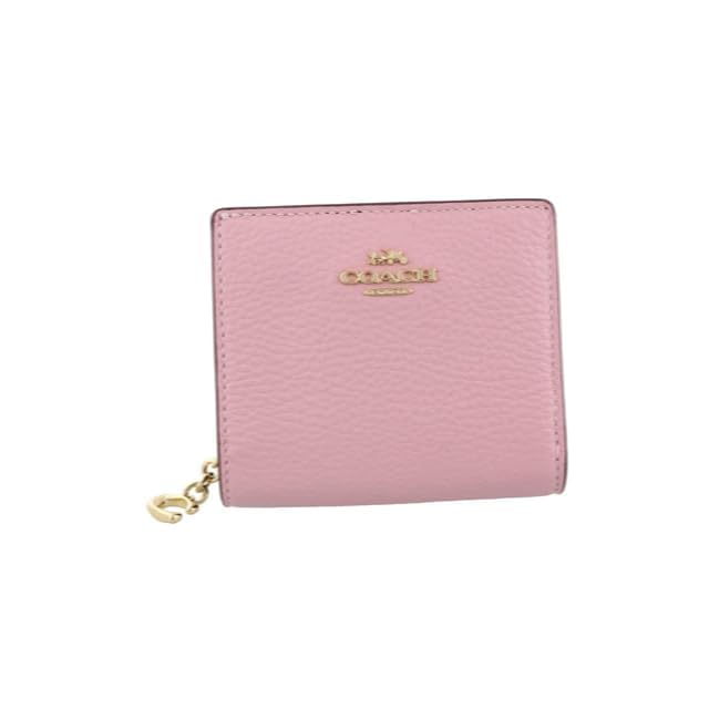 《新品未開封》[COCOROSUS] レディース 二つ折り財布ラグジュアリー ペブルド レザー C チャーム スナップ ラウンド ジップ ウォレットアウトレット 折財布 ミニ財布アウトレット品 (ピンク) [並行輸入品]