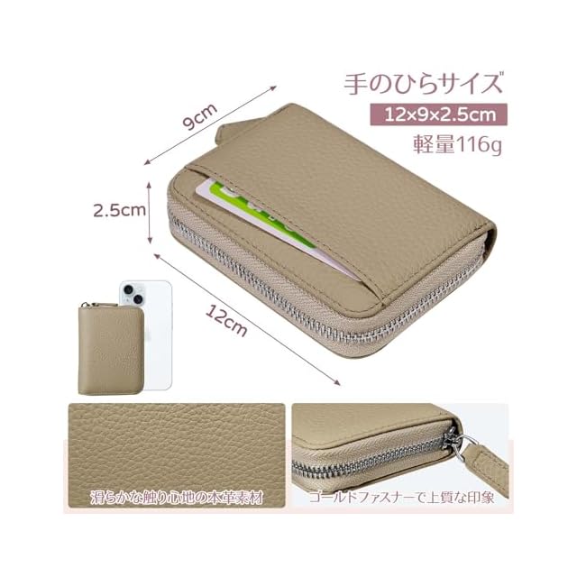 【高級感のある牛革製】シボ感の手触りが良い上質なレザーを使用しています。丈夫でキズ・汚れがつきにくく、シンプルなデザインの中に詰め込まれた高機能が特徴です!カード・小銭・お札を入れてもすっきり収まり、メイン財布にもサブウォレットとしても、幅広く使えるアイテムです。【サイズ】縦9cm/横12cm/奥行2.5cm、120g。
