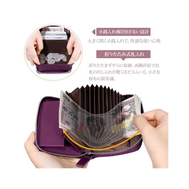 商品名:《新品未開封》[DSDCDJ] ミニ財布 レディース メンズ 二つ折り財布 コンパクト 本革 RFIDスキミング防止 小さい財布 「お札の収納が簡単」じゃばら 大容量 小銭入れ