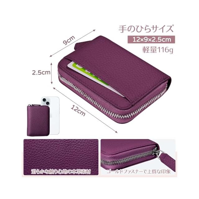 【高級感のある牛革製】シボ感の手触りが良い上質なレザーを使用しています。丈夫でキズ・汚れがつきにくく、シンプルなデザインの中に詰め込まれた高機能が特徴です!カード・小銭・お札を入れてもすっきり収まり、メイン財布にもサブウォレットとしても、幅広く使えるアイテムです。【サイズ】縦9cm/横12cm/奥行2.5cm、116g。