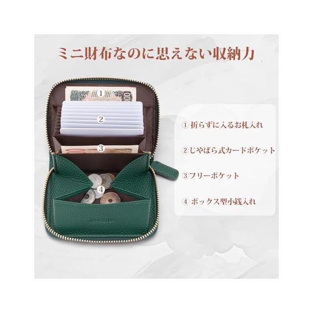 【手のひらサイズでミニバッグにぴったり小さい財布】コンパクトなのにしっかり収納。小さめバッグ派の女性に最適。財布のサイズ:10.5×8.5×2.5cm 重さ:86g