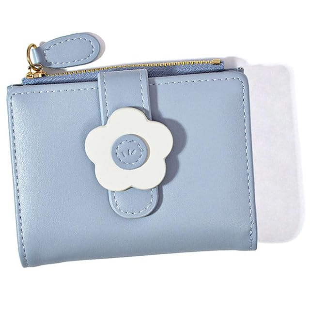《新品未開封》財布 レディース カードホルダー 小銭入れ コンパクト かわいい 短 2つ折り ミニ財布 ポータブル 収納 コインケース 折り畳み小銭入れ 高校生 女子 (ブルー)