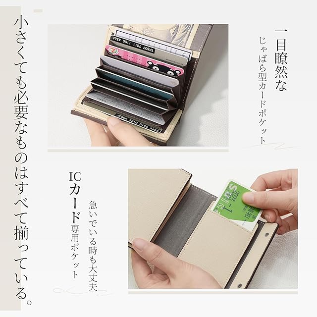 「十分の収納力」コンパクトなサイズにもかかわらず、驚くべき収納力を誇ります。最大で20枚の紙幣をしっかり収納できるポケットを備えています。さらに、8つのカードポケットを持ち、最大で20枚のカードを整理して収めることが可能です。