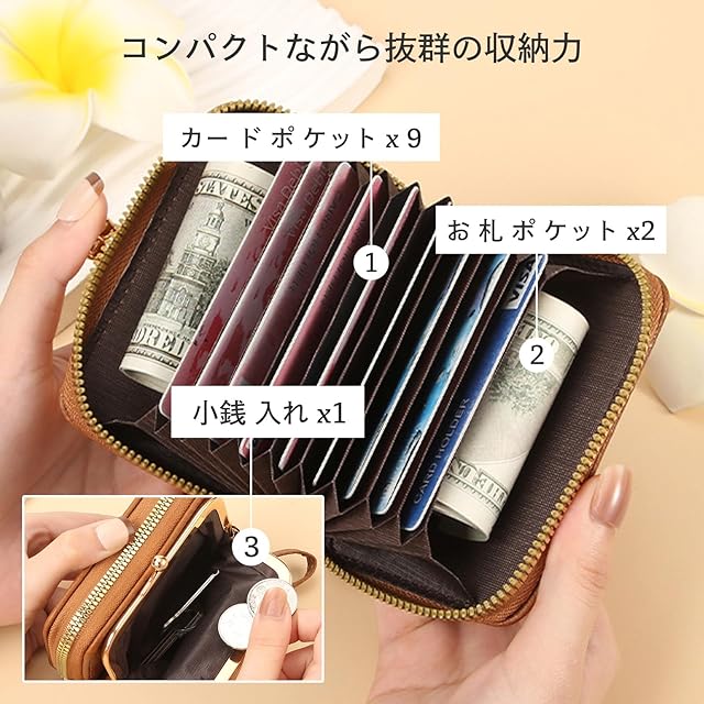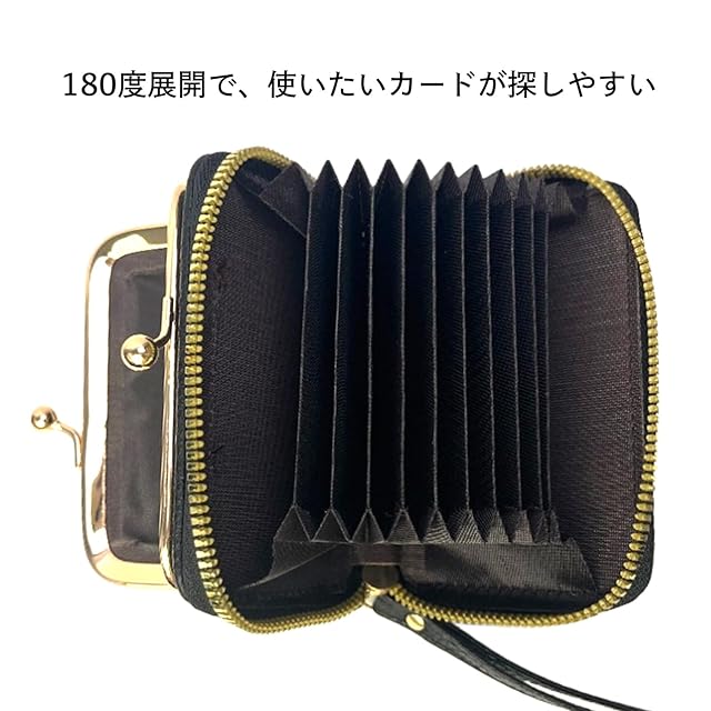 【多機能な収納設計】コンパクトで使いやすいがま口財布。カード入れ×9、自由ポケット×2、蛙嘴式財布×1を完備し、大容量でありながら小さい財布としての利便性を兼ね備えています。レディースに人気のミニ財布で、お札を折らずに収納可能。小さい財布のファスナーを開けると180度広がるので、使いたいカードが一目瞭然。