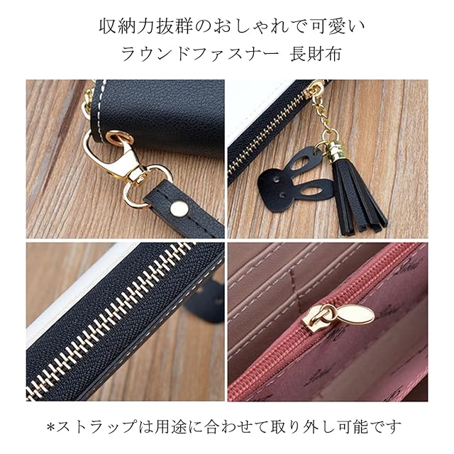 ♥ラウンドジップでたっぷり収納でき、カード、お札、レシート、切符、免許などきれいにまとめられて便利です。付属のストラップは用途に合わせて取り外し可能です。